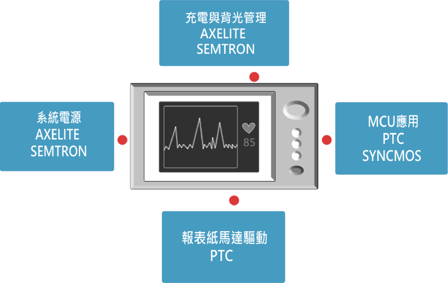 疫情影響進而數位醫療順勢而生,綜合物聯網與工業電腦系統遠距離管理,並針對居家舒緩裝置提供低耗能低雜訊穩壓IC與MCU人機介面管理。